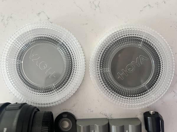 - Two (2) Hoya circular polarizing filters (same filter, two sizes)