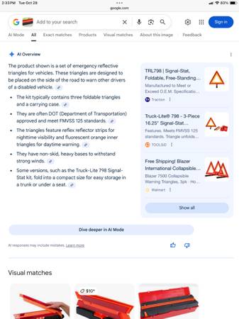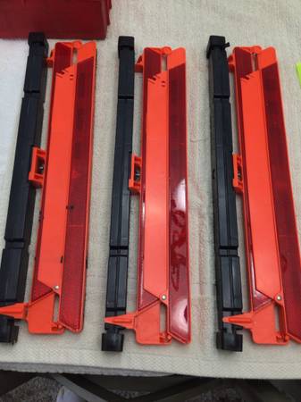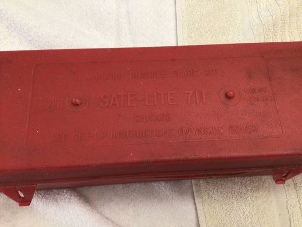 We are starting to clean out our parent’s summer home. This was in a Wisconsin mobile home shed that Dad had five cabinets filled with random stuff. It used and do show wear. Nothing is broken, I only wiped everything with a damp cloth, and everything is functional. The box has some cracks, bent in the front, dirty but still closes. The reflectors are not cracked, they fold up easily, no rust, has some tarry-like substance in the bottom of the case that transferred to the triangles. I tried to take as many quality pictures to be transparent of my item’s condition(s). There is also an AI description picture. Dad was very proud about all the stuff he had in that shed as we were not allowed in it. I think his care is why these items lasted so long and appear to look really good.