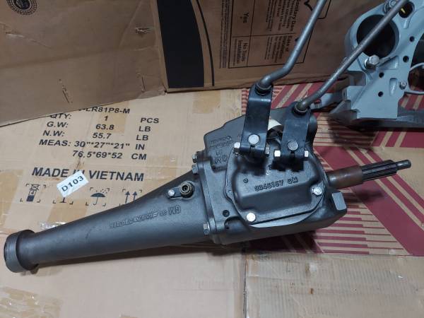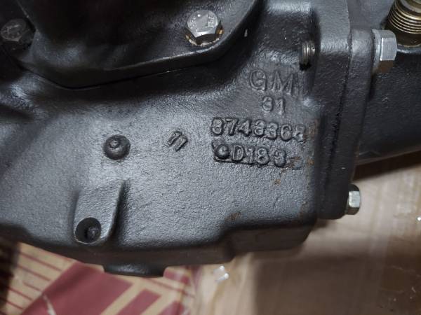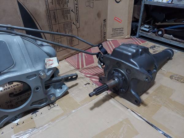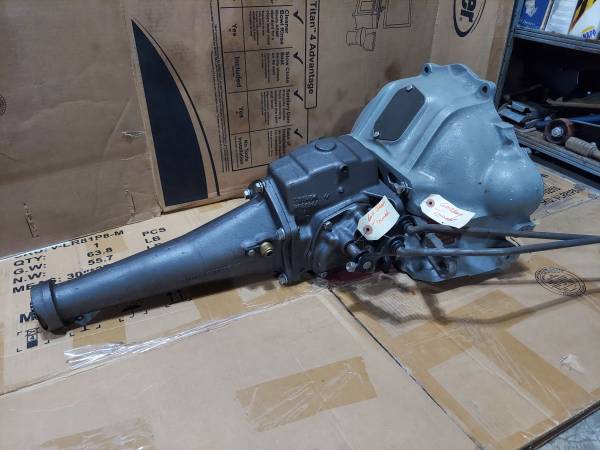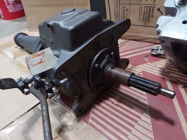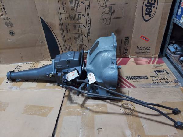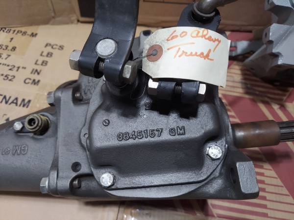 1960-63 Chevrolet truck GM #3845157 3-speed manual transmission, 16 spline model for a 235.5 cubic inch, 6-cylinder engine. NOS & Never installed from an old GM dealer service department complete with #3765708 bellhousing, clutch fork & shifter rods for $2000.
