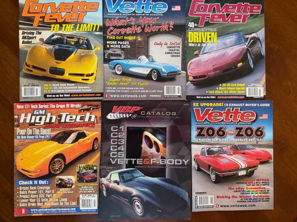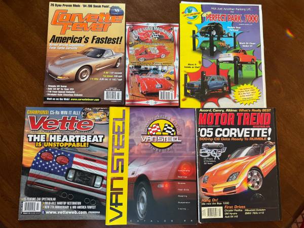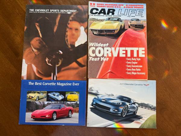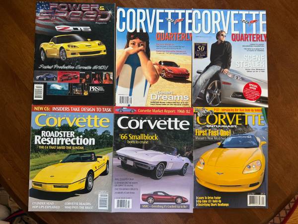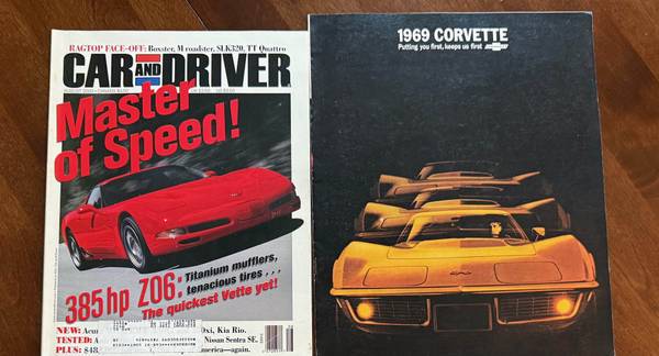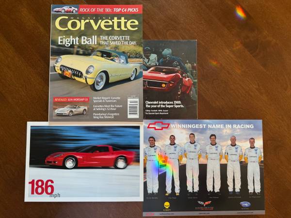 We have many Corvette Items including 14+Posters, many Magazines, Racing Literature, Vintage Corvette Literature, 2 Stainless Steel Corvette Logo Key Pendants-FOBs, Corvette Racing Lanyard, Glove Box Folder with pen, and more.