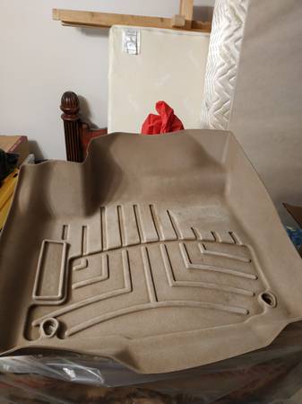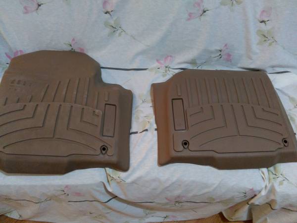 These tan floor boots fit the driver's and passenger's floor areas and are two years old. Although they have seen some wear, yet they are still perfectly sound and usable, notwithstanding some fading. Your feet and your Evoque will love them. Snow? Mud? Messy children? Messy spouse? No problem! Best of all, come spring, your Evoque's carpets and floorboards will not be soiled and/or rusted. I used them year-'round, although some owners snap them into their cars for winter blizzards and spring rainfalls.