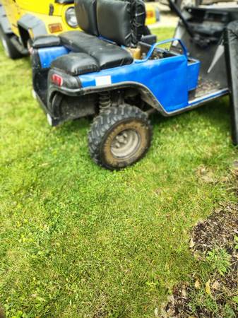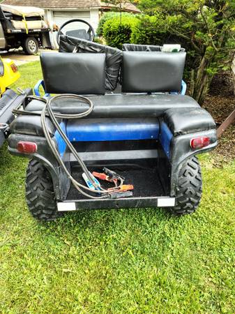 E-Z-Go gas golf cart with two stroke motor brand new battery lifted. No trades 2500 cash takes it. Bring a trailer!