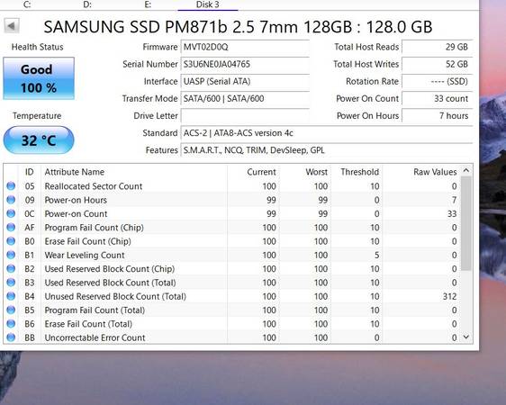 For Sale****PM871 128 GB 2.5 in SSD. Pretty much New, 7 Hour on Check Smart Data on Image TLC (Triple-Level Cell) NAND flash memory Drive is wiped Unallocated GPT Pickup only Thanks