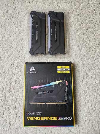 Cables for cpu, gpu, psu, sata, and fans Premium CPU air cooler 2x8 Corsair 16gb DDR4 3200MHz ram Extra 8gb ram stick