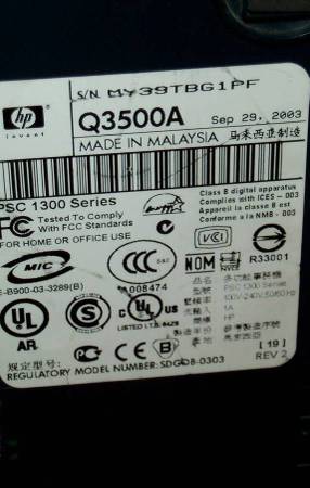 Here is a PRINTER SCANNER COPIER All In One HP Q3500A PSC 1350 complete with power supply electric cord. Needs ink cartridge as it has been sitting for awhile. Powers up fine with easy to read digital read out. Easy pick up from Villa Park, IL. a few blocks west of Roosevelt Road. Please CALL or TEXT show contact info