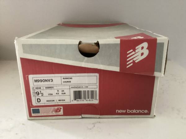 New Balance M990NV3 running shoes. Men’s size 9 1/2, D. Navy. Made in USA. Never worn.