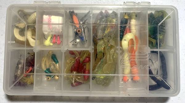 Plano 12 compartment tackle storage Case full of pre-rigged Lures