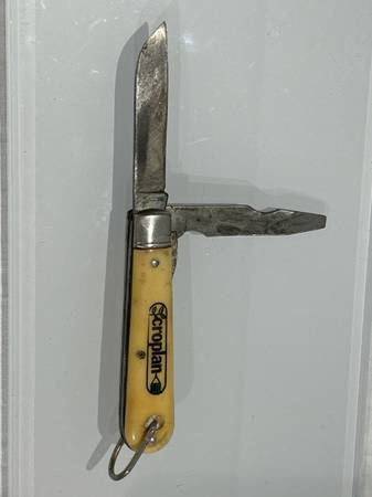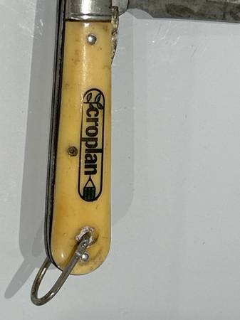 This vintage 2-blade Colonial pocket knife was made in Providence, Rhode Island, and handed out as an agricultural co-op premium in the 1960s–70s. It features dual advertisements: CropPlanK logo on one side, Land O’ Lakes FELCO on the other. Built with Colonial’s typical working-class durability, this little jack knife was meant to live in a farmer’s pocket.
