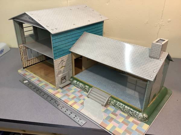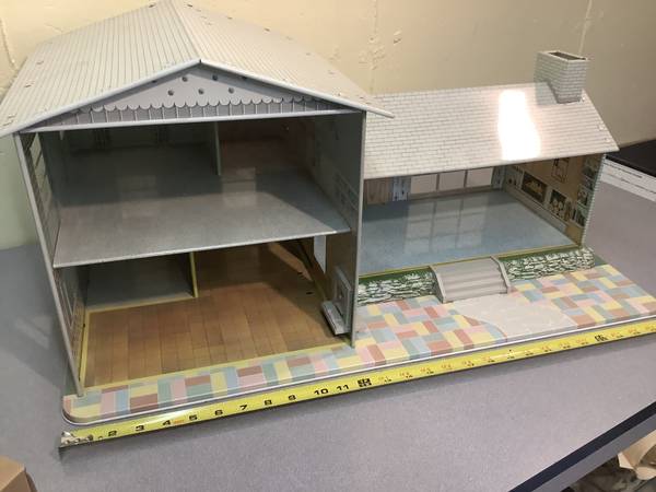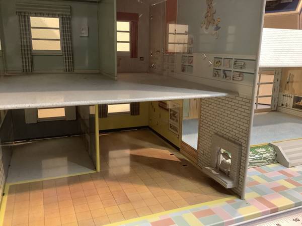 As described, this is a rarely used doll house from the 1960s. Very light weight but durable. no stains, no rust. Its ready to be played with 50 firm has all the interior plastic furniture