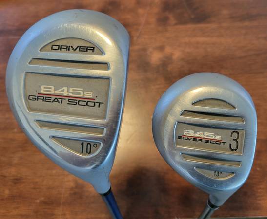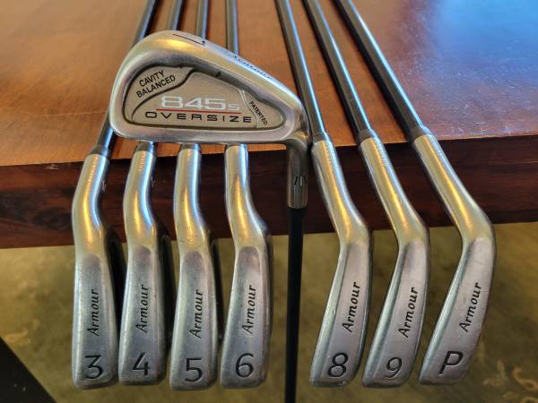 Thanks for looking at this right handed set of Tommy Armour 845 oversized iron set with regular flex graphite shafts. The irons come with matching black 845 grips in good condition. The woods include a Silver Scott Driver 10° and 3 wood 13° with regular flex shafts. Add a putter and bag and make it a full set. Dozen balls any brand you'd like included in purchase.