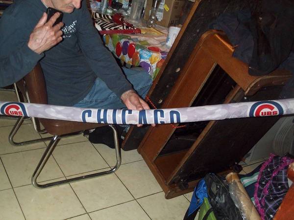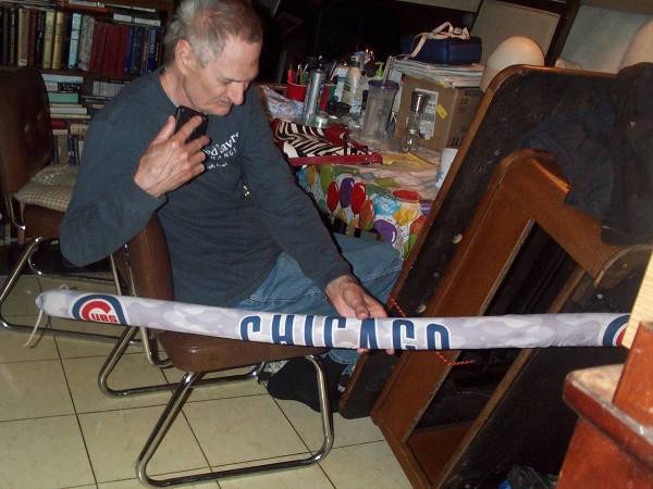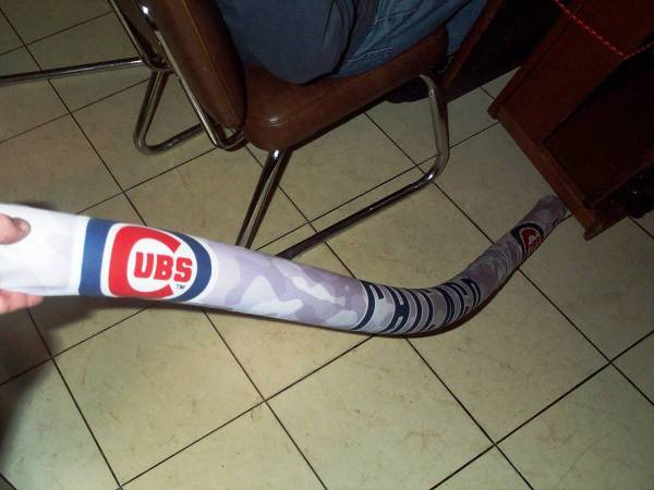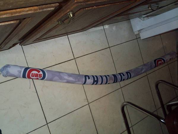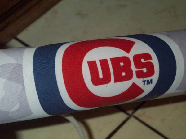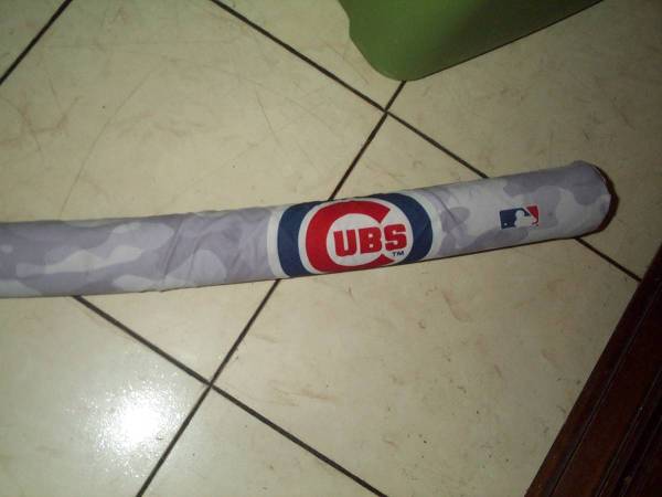Chicago Cubs Baseball Noodle collectible. Great for waving at games, display or swimming pool toy. Basically a pool noodle in an official MLBP gray military design nylon long skinny tie bag. Measures aprox 2" round x 56" length. Pick up a few blocks north of Roosevelt Road. Please call or text show contact info