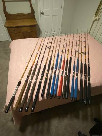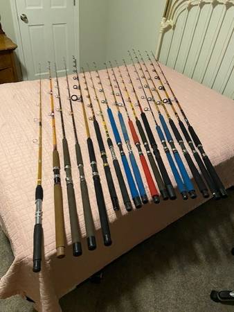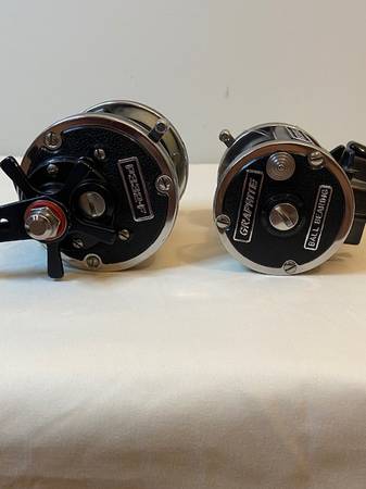 Am selling my entire massive collection of ocean and salmon fishing equipment (rods and reels). Many items are brand new (never used) or lightly used. All are in excellent to mint condition. Many items have original boxes, tags and manuals. Rod brands include many different actions ranging from 12lb to 80lb from Sabre, Daiwa, and Kunnan. Reel brands include conventional & spinning reels such as Newell, Penn International, Penn Senator, Penn Jig Master, Pfluger, Abu Garcia, and Daiwa. All reels are in excellent to flawless condition. If you are interested in Fresh Water or Fly Fishing, please check out my other ad "FRESH WATER & FLY FISHING EQUIPMENT" which includes many vintage collectable unused items such as Mitchell Garcia 300s, Pfluger fly reels, Fenwick fly rods, and Eagle Claw Trail Masters and fly rods.