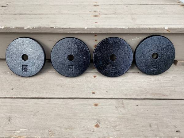 Weight Plates 5lbs Each Set of 4 pieces with 1" center hole In nice condition