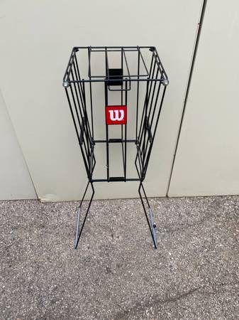 Wilson Tennis Ball Pick-Up Hopper Only basket/hopper for sale, not a balls Portable tennis ball basket Holds 75 tennis balls with a no-spill lid Durable plated steel construction Handles convert to...