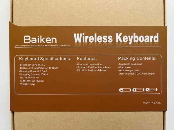 Baiken® iPad 3-pc Wireless Bluetooth Keyboard + iPad Case + Cable Set
