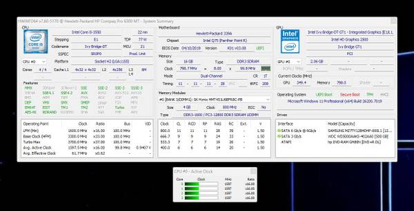 Intel Core i5- 3550, 3.3 GHz Base, 3.7 GHz Base.