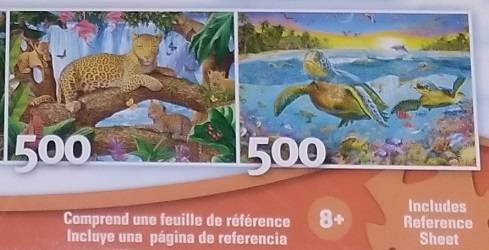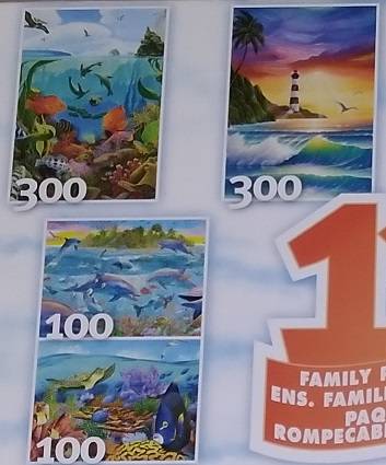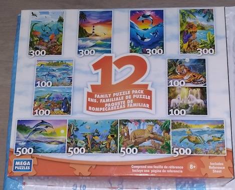 Set of 12 puzzles, each in it's own sealed pack. Some 100 pc., some 300 pc & some 500 pc puzzles. Each is either wildlife or sea-life themed. 500 pc Puzzles are 13" T x 19" W 300 pc Puzzles are...