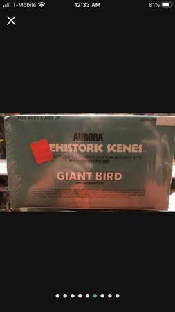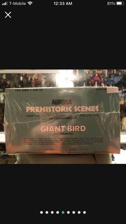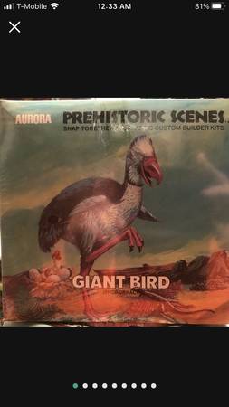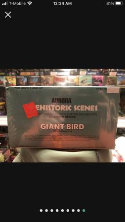 Aurora “Prehistoric Scenes” Giant-Bird plastic assembly kit from 1972. Sealed in original box, fresh from a sealed case over fifty years ago! Asking $200.00 Manny 😎