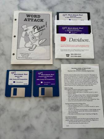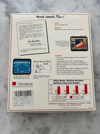 I am selling a Davidson Word Attack Plus Vocabulary vintage computer software. Computer software is compatible with IBM, Tandy and MS DOS and includes both 3.5” and 5.25" floppy disks. Original box and user’s manual included.