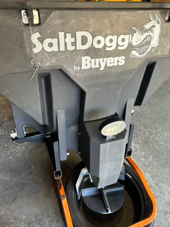 Buyers SaltDogg, 11 Cu Ft Truck Tailgate Mounted Rock Salt Spreader w/ Lid, Load Capacity 825 lb, Max. Spread Width 40 ft 2” hitch ball. In Great condition Comes with controller and Harness. Call or...