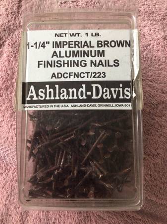 4). Ashland-Davis 1-1.25” Imperial Brown Aluminum Finishing Nails looks full but opened