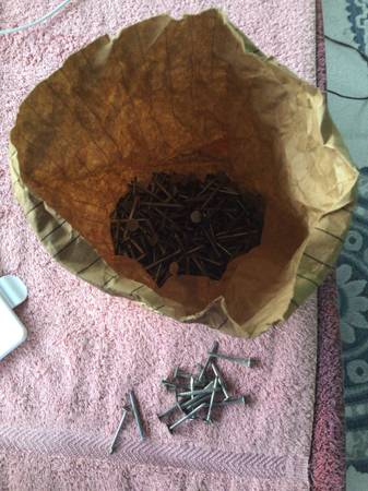 2). An Ace Hardware brown bag of roofing nails. Has to be 200+ nails in this bag. At least 30-years old.