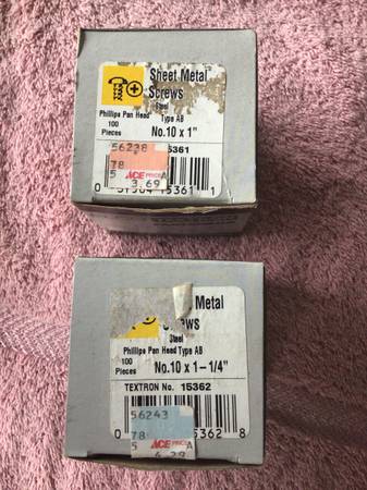 5). Phillips Pan Head Type AB No. 10x1” Sheet Metal Screws Steel Elmo Textron Fasteners 2/3 full box of 100 pieces