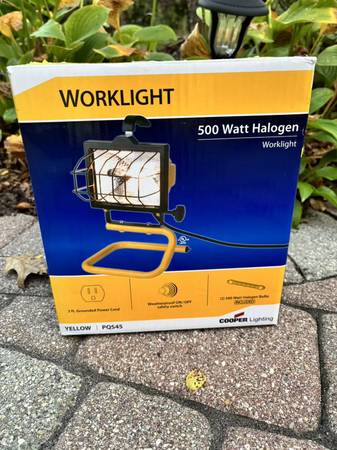 Bright, durable, and ready for any job! This 500-watt portable halogen work light by Cooper Lighting provides strong illumination for workshops, garages, construction sites, or outdoor projects.