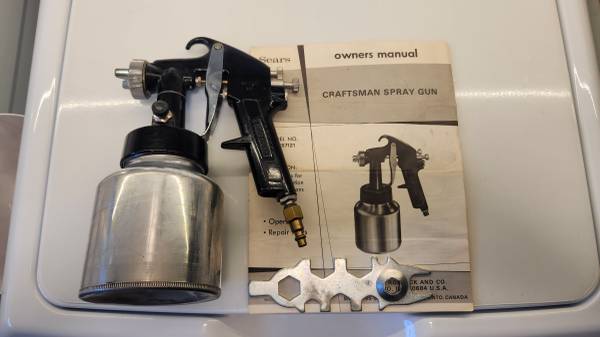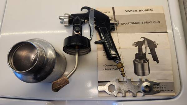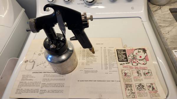 PAINT SPRAYER THAT REQUIRES A COMPRESSOR. INCLUDES MANUAL AND INSTRUCTIONS. CLEAN, READY TO USE. CAN DEMONSTRATE WITH MY COMPRESSOR. LIGHTLY USED. CASH ONLY.