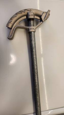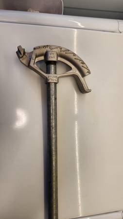 PIPE BENDER INCLUDES MANUAL / INSTRUCTIONS. INCLUDES 1/2" EMT PIPE HANDLE, READY TO USE. LIGHTLY USED. CASH ONLY.
