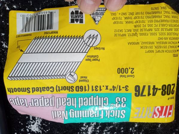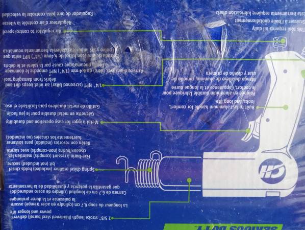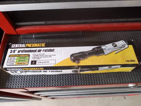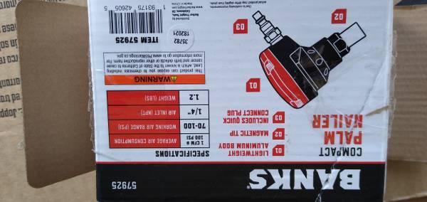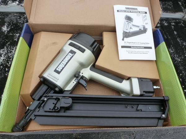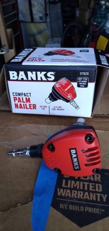 Air tool package. Ingersol Rand 1/2" air impact gun (231C) used in good condition made in USA, Campbell Hausfeld medium duty air chisel new in package, Central Pneumatic 3/8" air ratchet in excellent condition made in China, Central Pneumatic 3/8" air angle drill in excellent condition made in China, Surebonder pneumatic framing nailer new in original package opened but unused made in ?, and Banks compact air palm nailer in excellent condition made in China. All tools are in good to new condition and work. Includes (750-1000? ?) collated nails for the framing nailer air tool oil (if I can find it) and some air accessories (inflating chuck, pressure gauge and an air gun). Need to find and gather all the items. Text is best - call if you feel the need to talk. Located in storage unit.