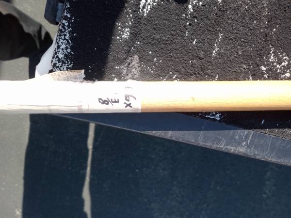 Wood tool handle approx. 66" long x 1.5"? In very good condition. Handle is round shaft is squarish rounded edges mounting end is tapered. Made in ? Sturdy wood maybe oak ash hickory? In storage....