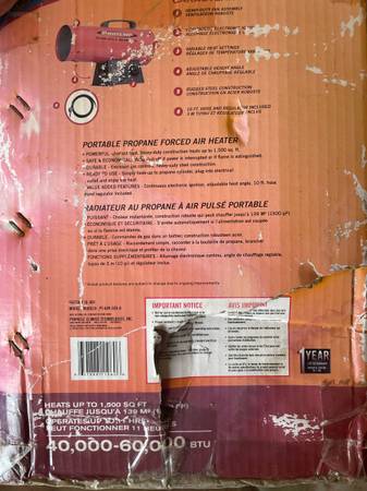 New never used pro temp 60,000 btu heats up to 1500 square feet
