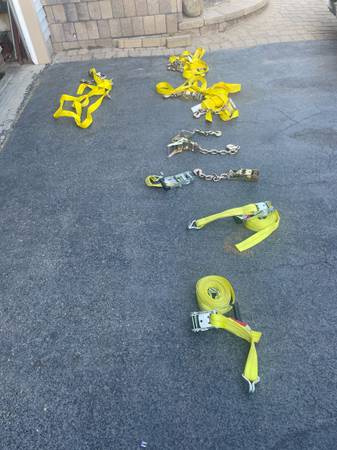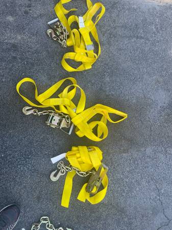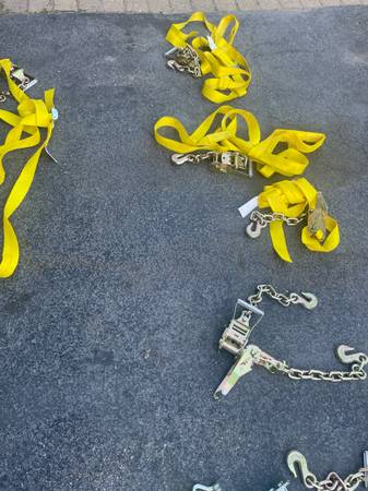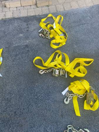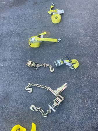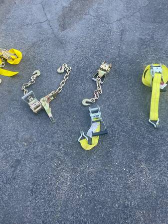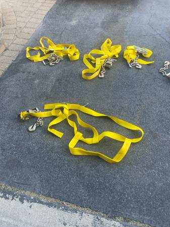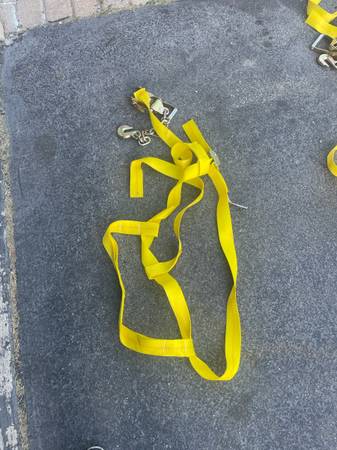 Four tire tie don straps with eight rackets Two were used for one trip other two never used 30.00 each
