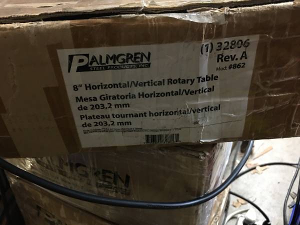 This is a new old stock, made in Taiwan, Palmgren rotary table. It is `10" in diameter. I only have the 10" left, though the picture shows an 8" I also have some 8" and 10" rotary, x/y slide tables....