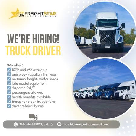 Join Freightstar Expedited, we are hiring Over The Road CDL class A company drivers