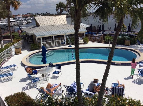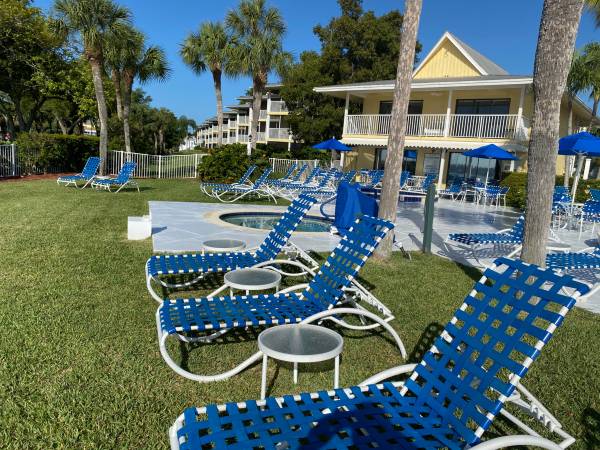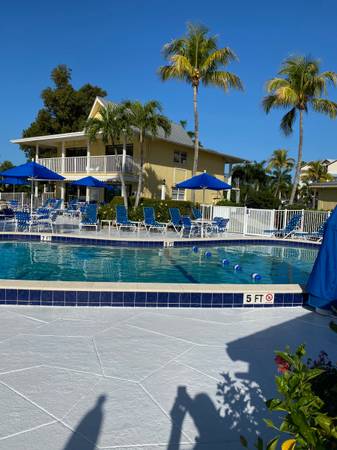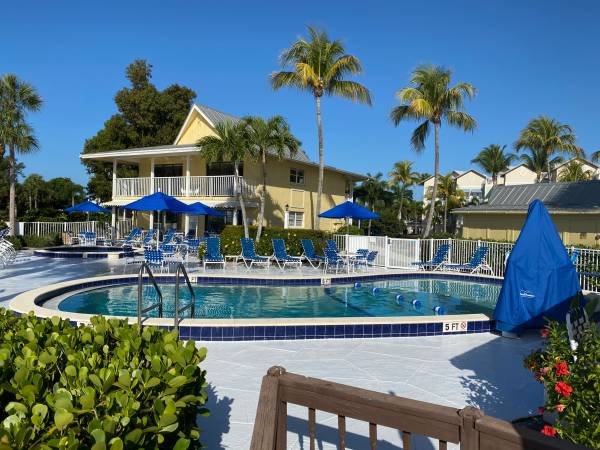 The Charter Club of Naples Bay Resort features a large heated outdoor swimming pool, multi-person hot tub, quaint tiki bar with food and drinks including alcoholic beverages, large clubhouse, private boat dock , outdoor gas grills and on-site parking. Pool, tiki bar and patio all overlook beautiful Naples Bay. Use of bicycles, fishing poles and beach chairs included. All this and more here in historic olde Naples.