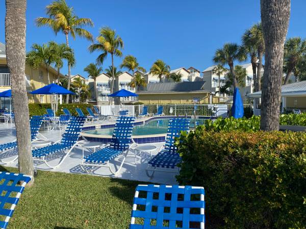 Extraordinary accommodations here at the Charter Club of Naples Bay Resort. Located in historic olde Naples, our 3rd floor unit features 2 bedrooms, 2 bathrooms, full kitchen, living room/dining room combo, large screened balcony overlooking a park and in unit washer and dryer. All rooms are well appointed and have recent updates. Relax and enjoy the resort amenities. The 3rd week is in our Unit 7B second floor unit.