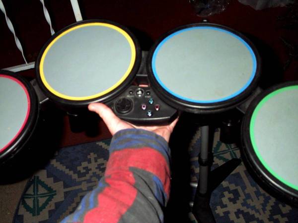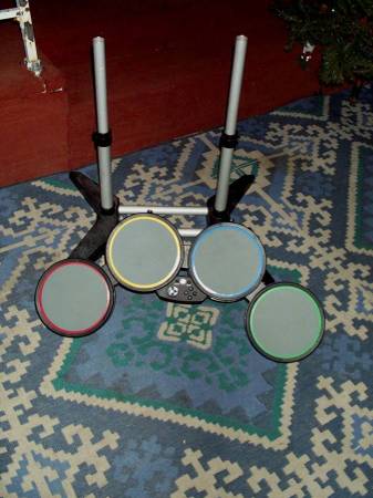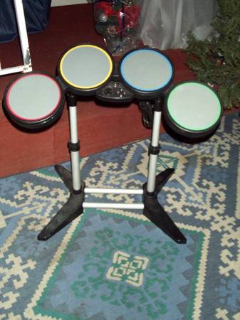 Harmonix electronic 4 pad drum set, control board and wire pictured. Comes with variable height stand. No other accessories included. Exactly as pictured. Measures aprox 29" wide x 14" deep x 40" height. Pick up from Villa Park, IL. Please call or show contact info