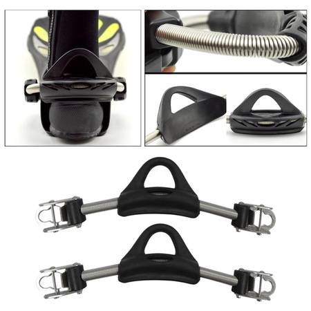 I need two scuba fin spring straps made from stainless steel (usually 316 stainless, which is the type of stainless steel and is best for marine environments). Mounting style (to each fin) is as shown but aesthetics with pull tab, casing around the spring, etc., can slightly vary; however, no plastic buckles or open pins that one needs to bend, please. Pull tab, loop, or whatever can be different. New, or gently used in like new or very good condition, please. Photos of desired style of fin straps are shown; these are representative examples of what will work but are not exclusive examples. I am not sure what length I need, but I wear a large fin and size 10 soft neoprene bootie with soft sole. I found the first two photos on Aquatec's website. Aquatec has not updated its website since 2019 and it is unclear if it is still operating in Taiwan.