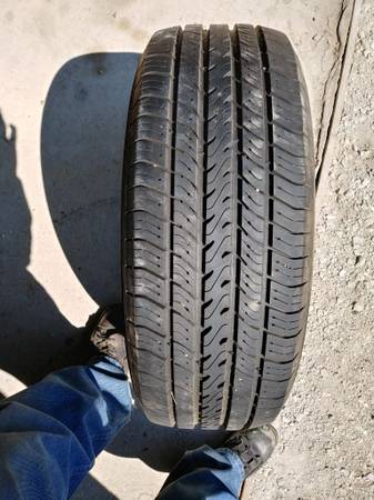 Two Michelin X Harmony tires P205/60R16 One like new - good for the road. The other has some wear on one edge as if the front end were out of alignment - would make a fine spare The good one for $40...